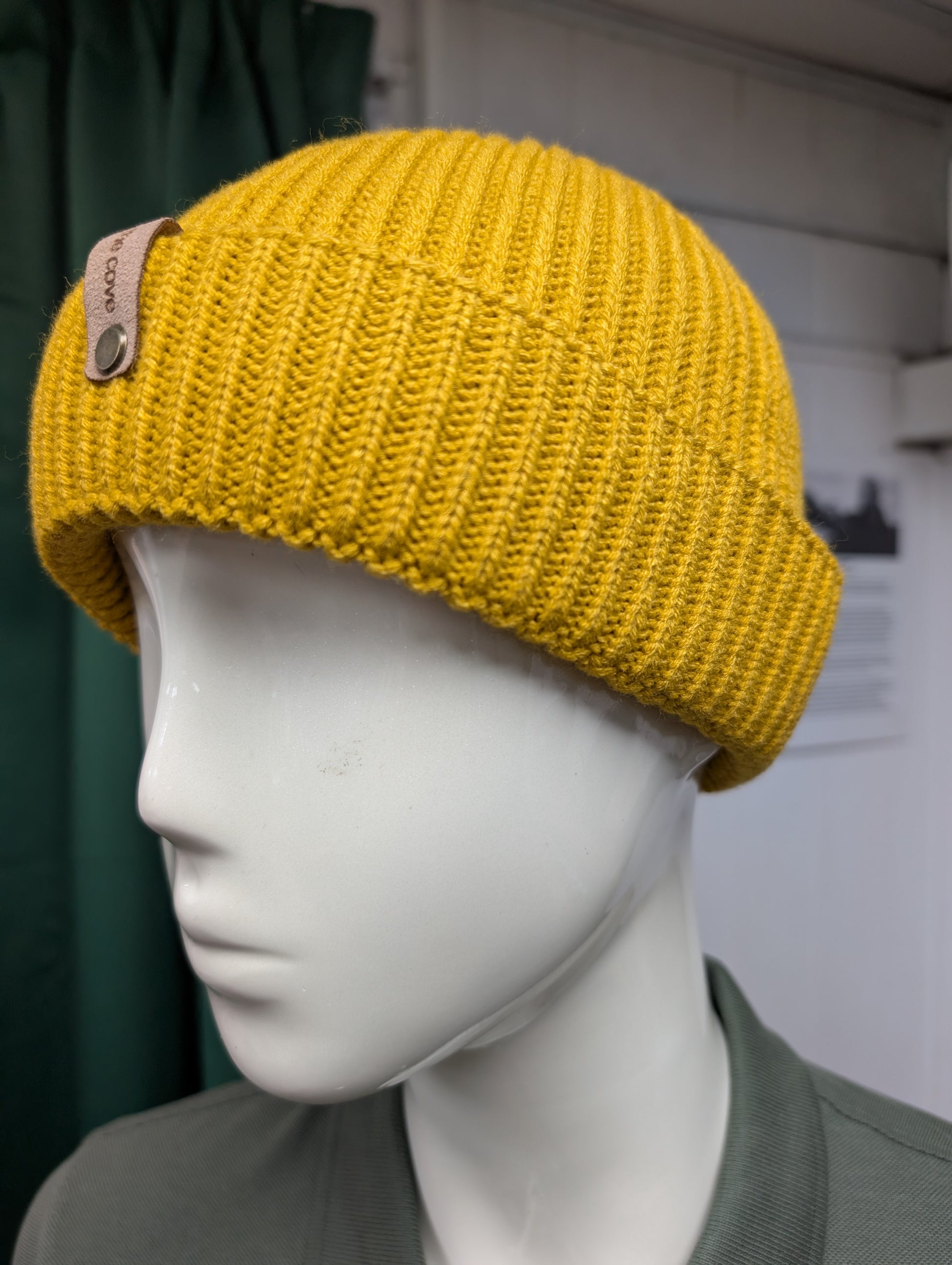 Subtle Cove tag stitched on the rim